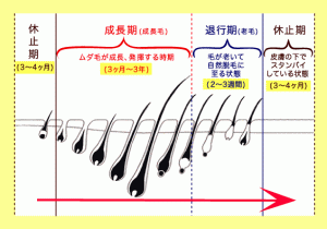 毛には「毛周期」と呼ぱれる生えかわりのサイクルが あります。